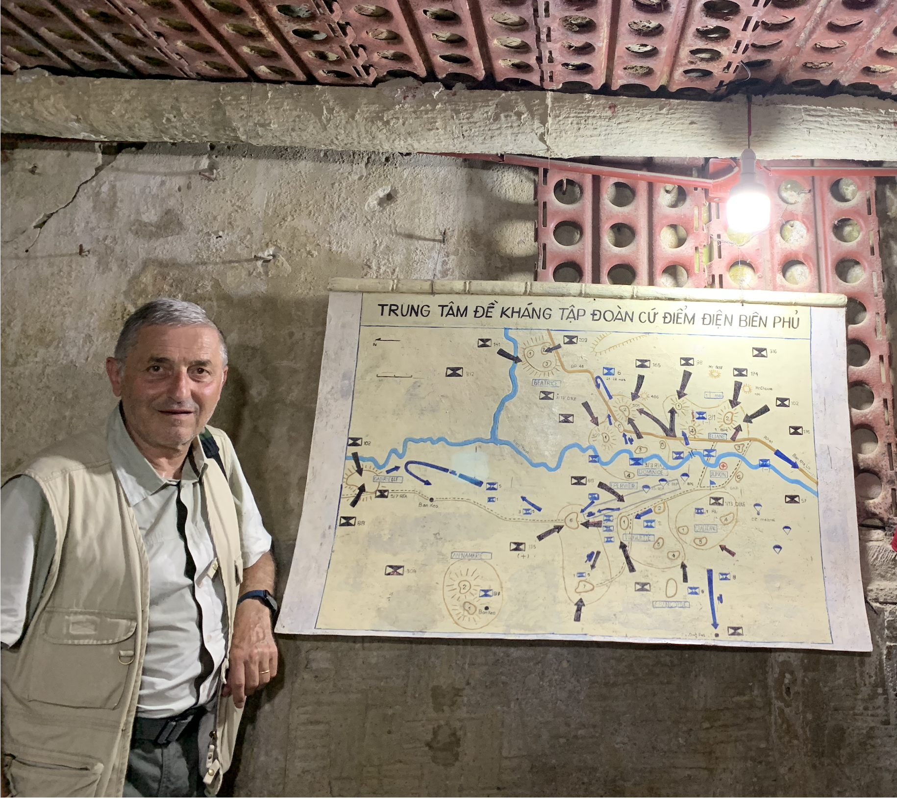Visite du PC enterré du général de Castries, d’où il dirigea la bataille jusqu’au bout.
